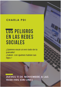 Junto con saludar y esperando se encuentren bien, les informo que la Escuela Las Américas los invita a participar de la charla «LOS PELIGROS EN LAS REDES SOCIALES» que dictará la PDI, para los apoderados de nuestra escuela.