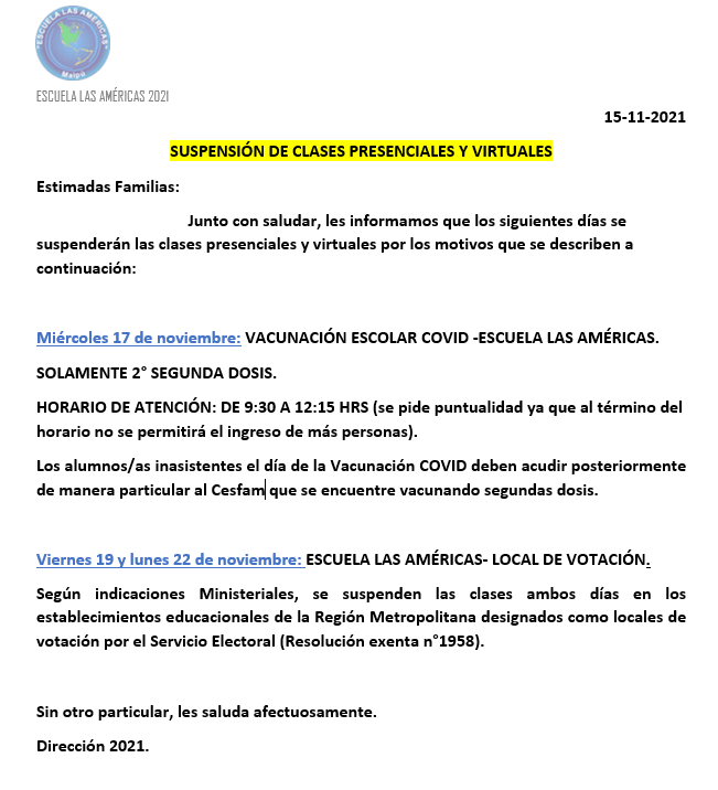 Suspensión clases presenciales y virtuales.